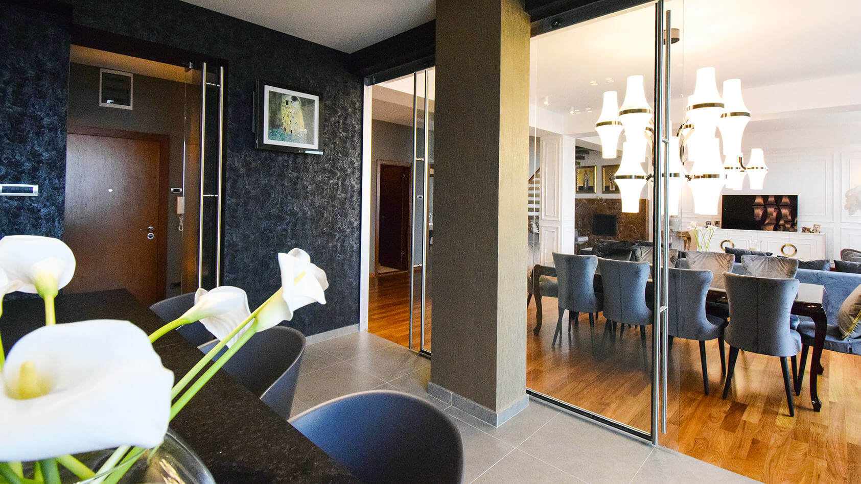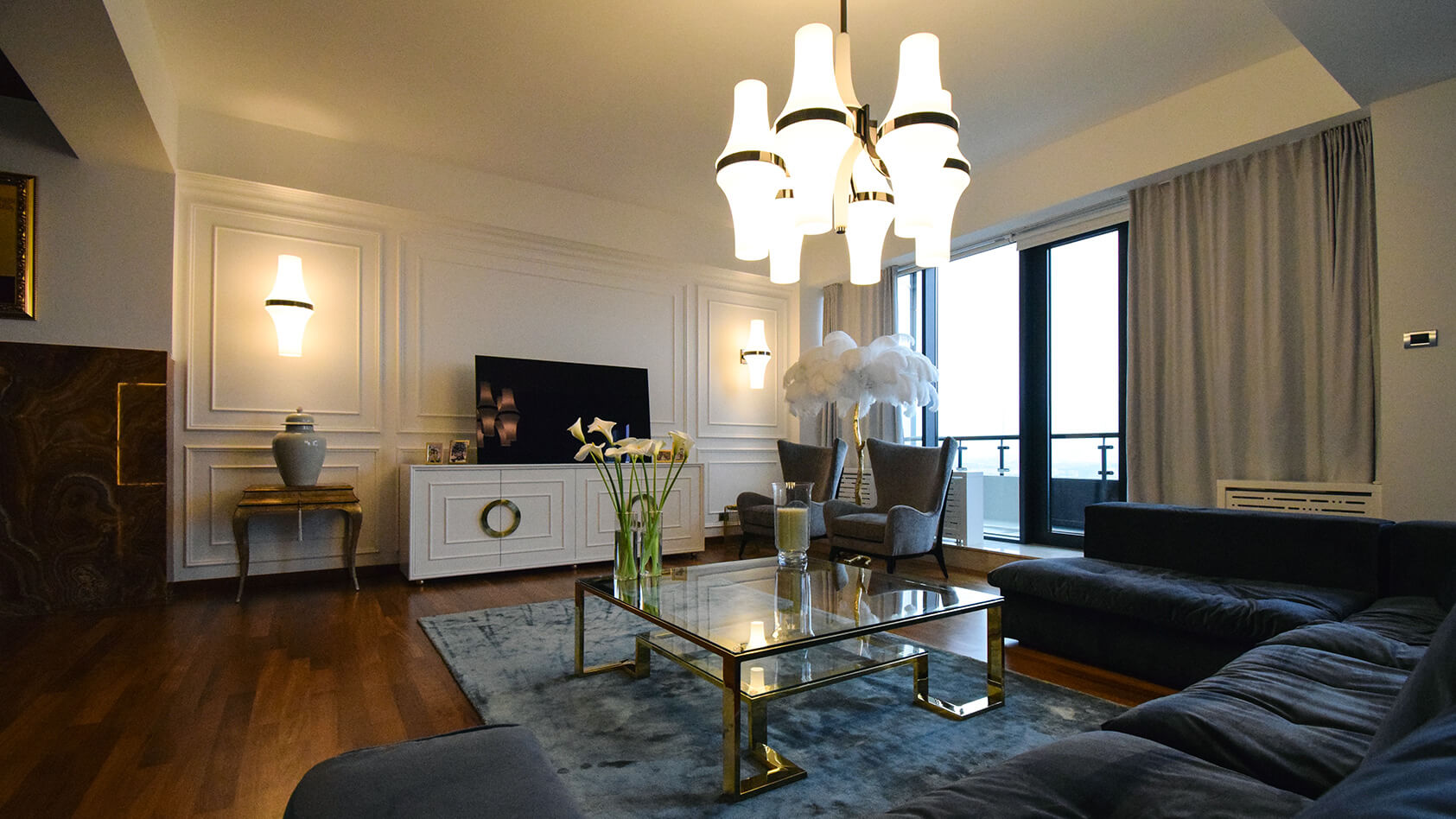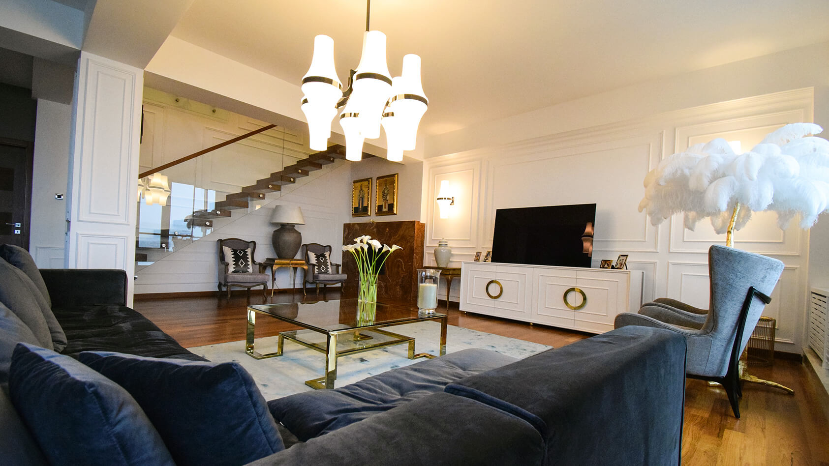 funktional und kunstvoll gebildete Wohnung für das gemütliche und qualitative Leben seines Besitzers.