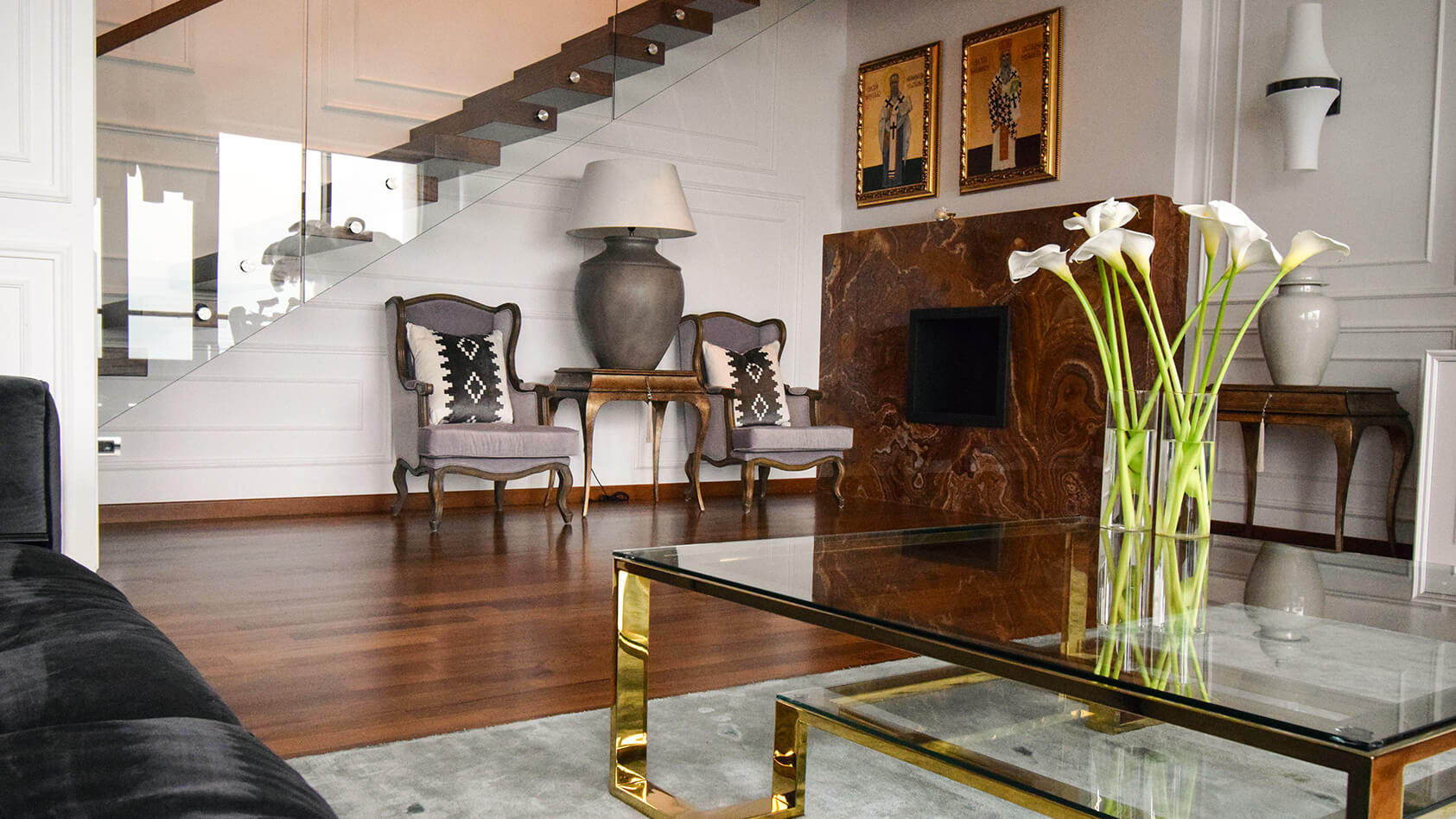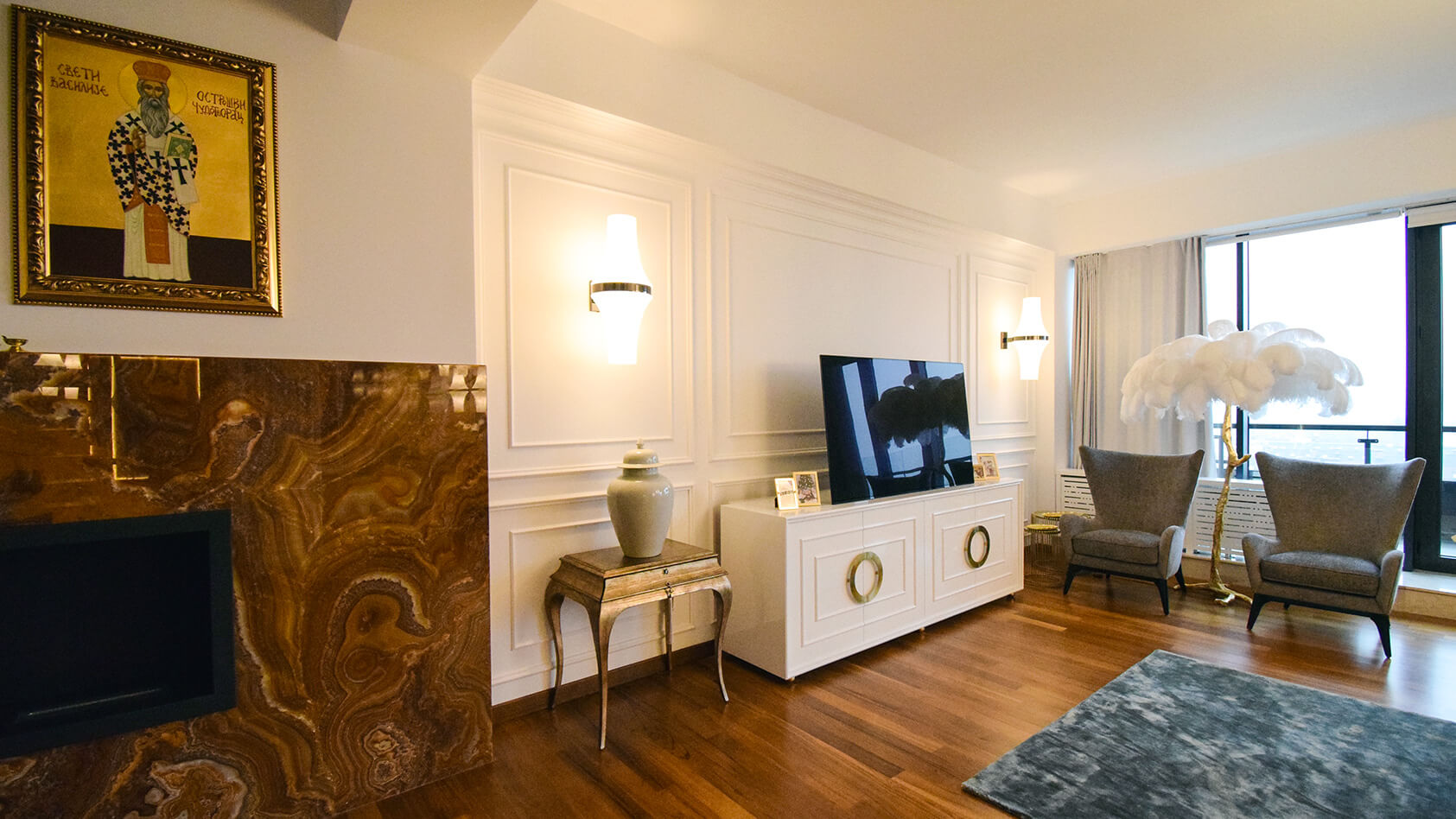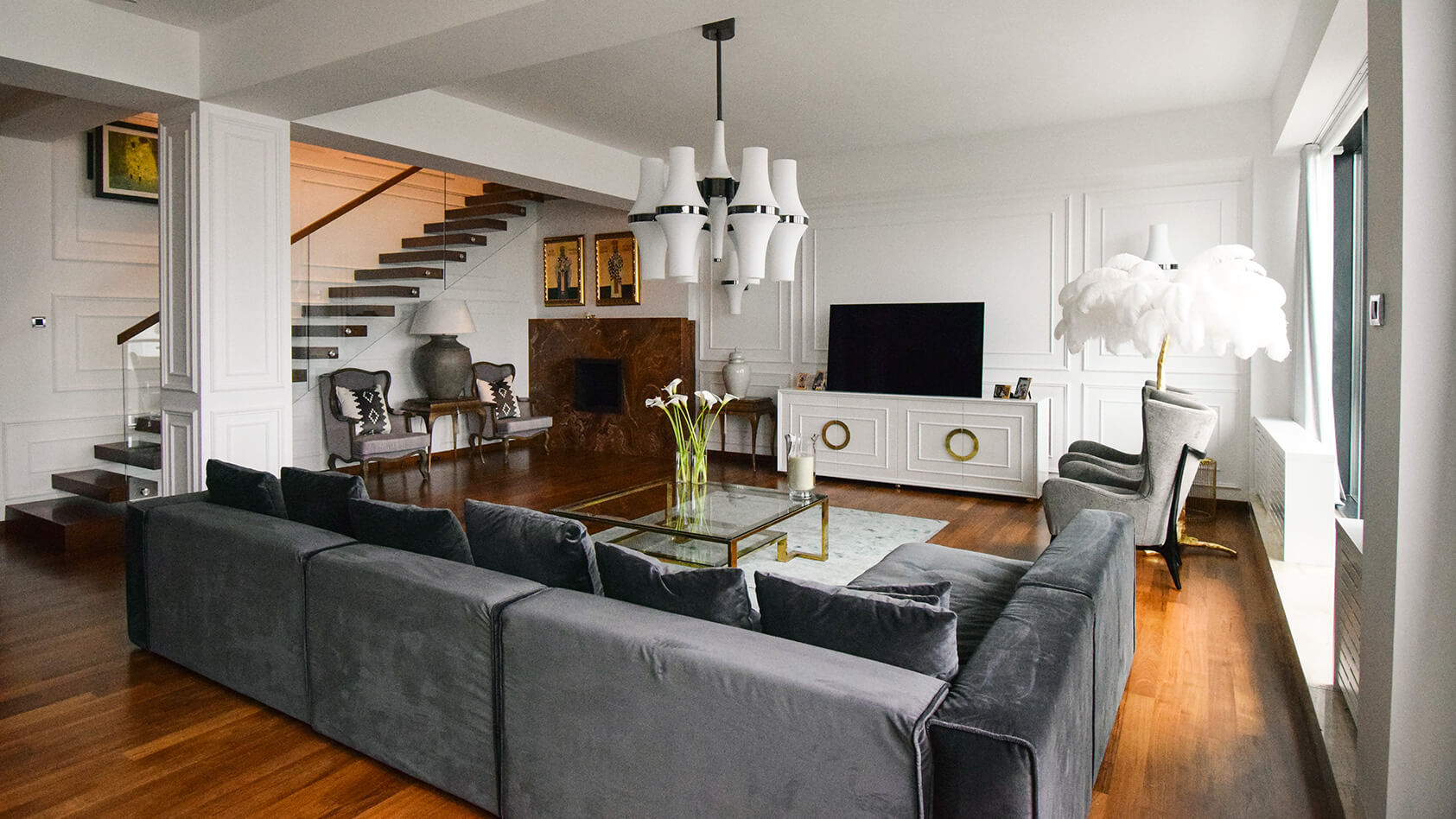 funktional und kunstvoll gebildete Wohnung für das gemütliche und qualitative Leben seines Besitzers.